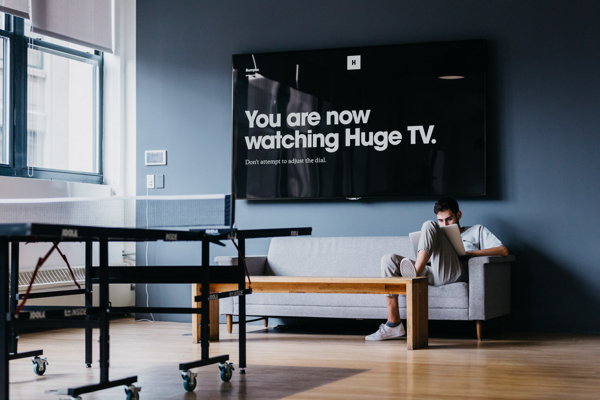 This project was a system of displays and programatic content that ran across offices across Huge locations. I led the design and content templatization of this project and it seemed relevant to include. See full project here.